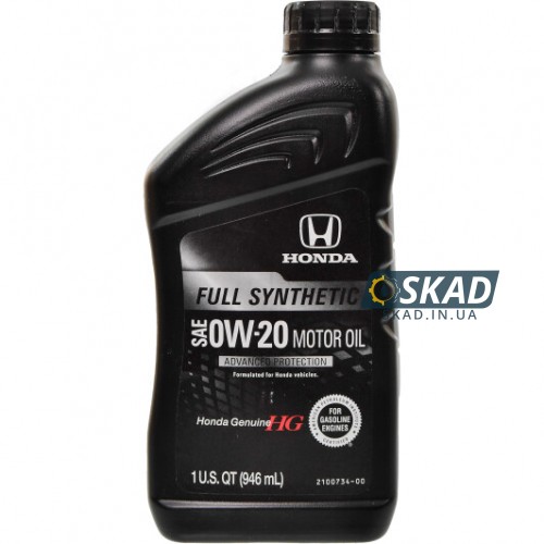 Honda 0W-20 Full Synthetic (0.946л) — Оригинальное масло США Оригинальное полностью синтетическое моторное масло Honda 0W-20 предназначено для современных четырехтактных бензиновых двигателей Honda и Acura. Обеспечивает высокую экономию топлива, эффективную защиту от износа и стабильную работу сист...