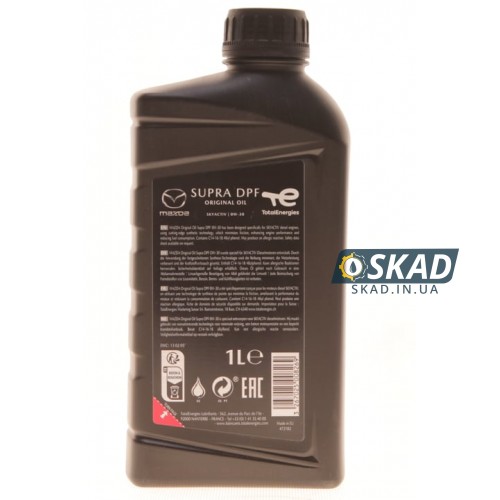 Mazda Original Oil Supra DPF 0W-30 — синтетическое моторное масло премиум-класса, созданное специально для дизельных двигателей Mazda с системами SkyActiv. Продукт прошел строгие заводские испытания и рекомендован для моторов, оборудованных сажевыми фильтрами (DPF).