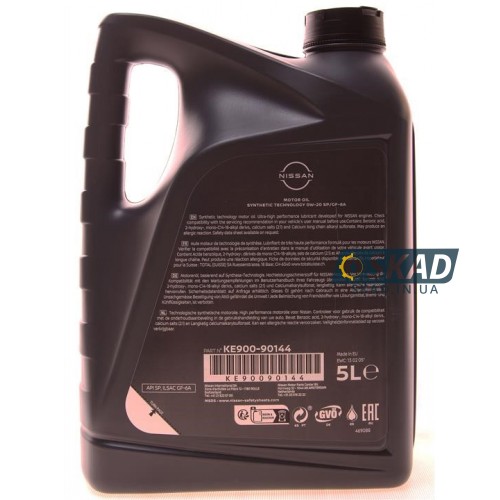 Nissan Motor Oil 0W-20 — синтетическое моторное масло для современных бензиновых двигателей Nissan. Обеспечивает экономию топлива, быстрый холодный запуск и надежную защиту двигателя.