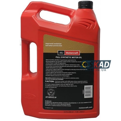 Motorcraft SAE 0W-20 Full Synthetic — повністю синтетична моторна олива преміум-класу, що відповідає гарантійним вимогам виробника. Призначена для сучасних бензинових двигунів з високими вимогами до захисту та економії пального.