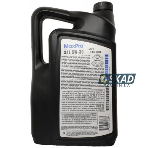 Mopar MaxPro SAE 5W-30 — синтетична моторна олива для двигунів Chrysler, Dodge, Jeep з допусками MS-6395 / API SP / ILSAC GF-6A.