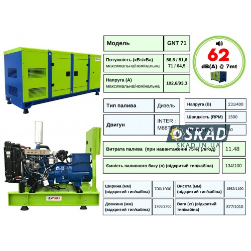 Генератор дизельний 56,8 кВт GenPower GNT 71 Туреччина GNT 71